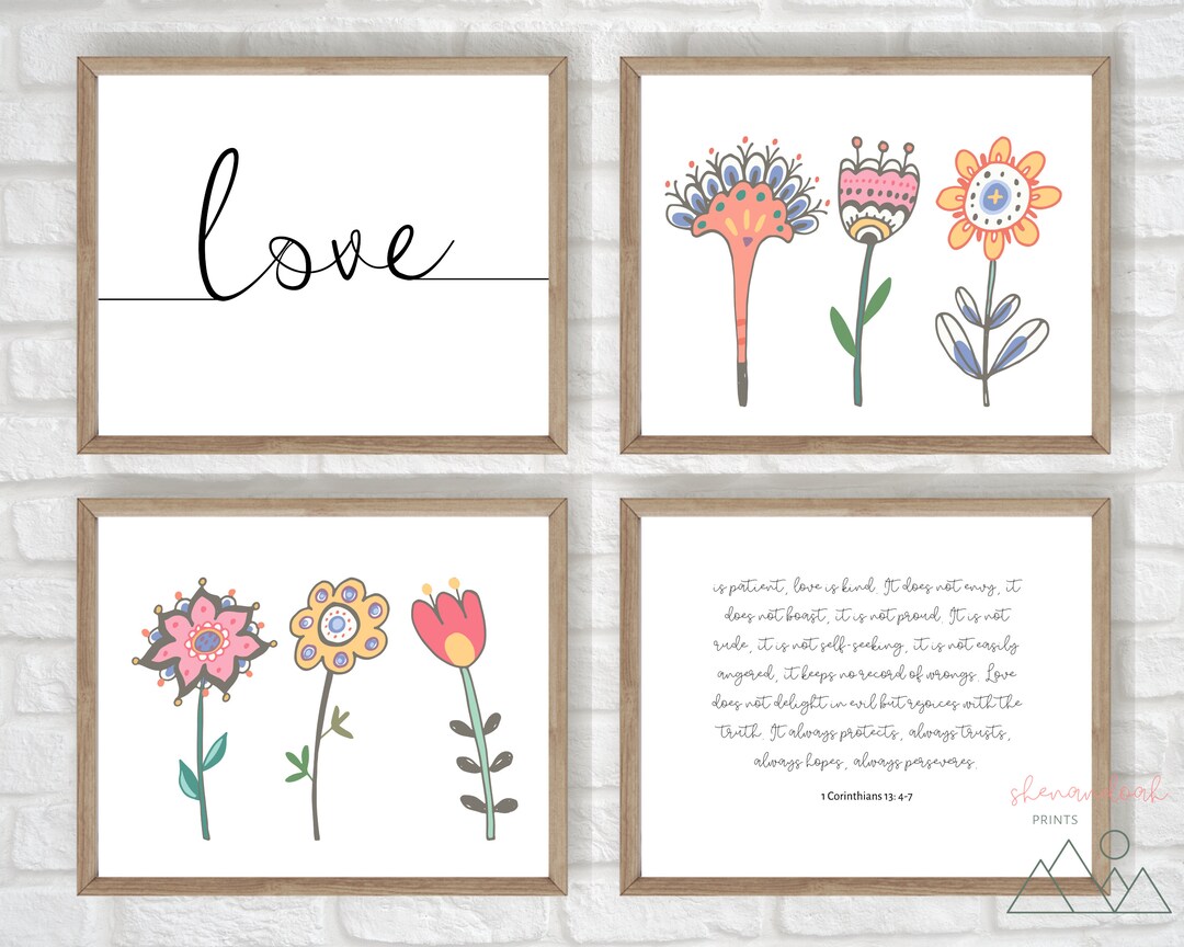 Bible Verse Wall Art Set of 4 Christian Prints Floral Bible Prints