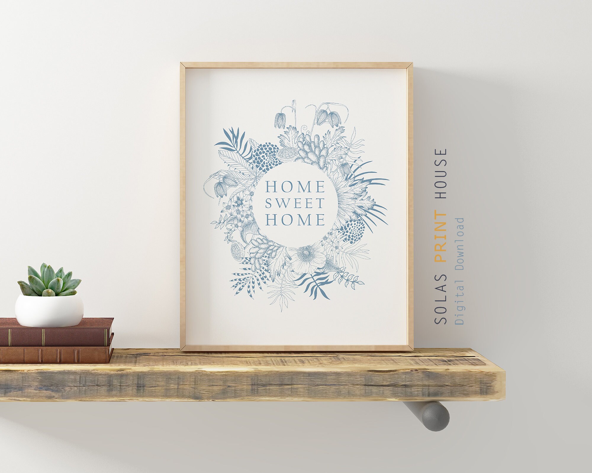 Floral Home Sweet Home Sign Printable Light Blue Art Print Etsy