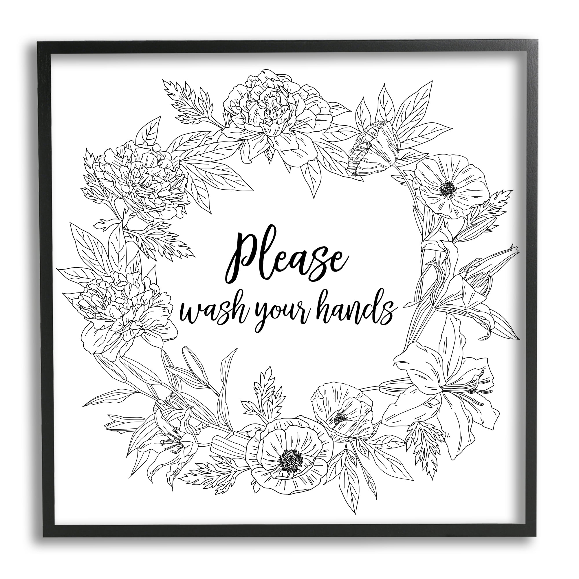 Stupell Industries Please Wash Your Hands Sign Floral Wreath Linework
