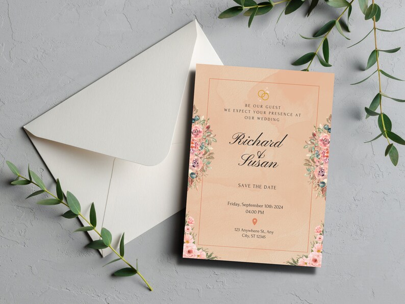 Vintage Roses Printable Wedding Card Template Customizable Etsy