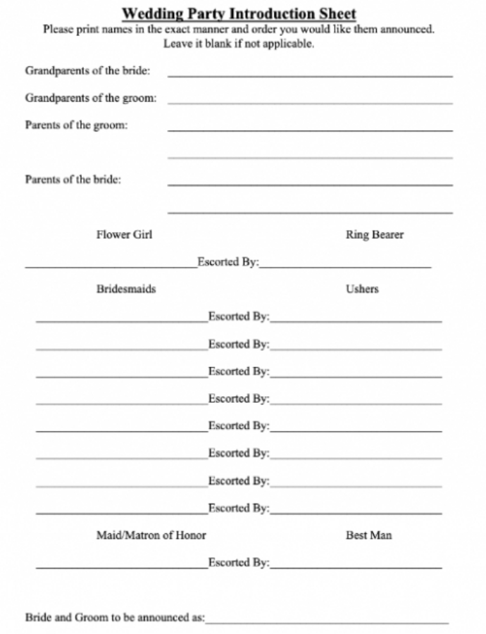 Wedding Party Lineup Template Free Sample Example Format Templates
