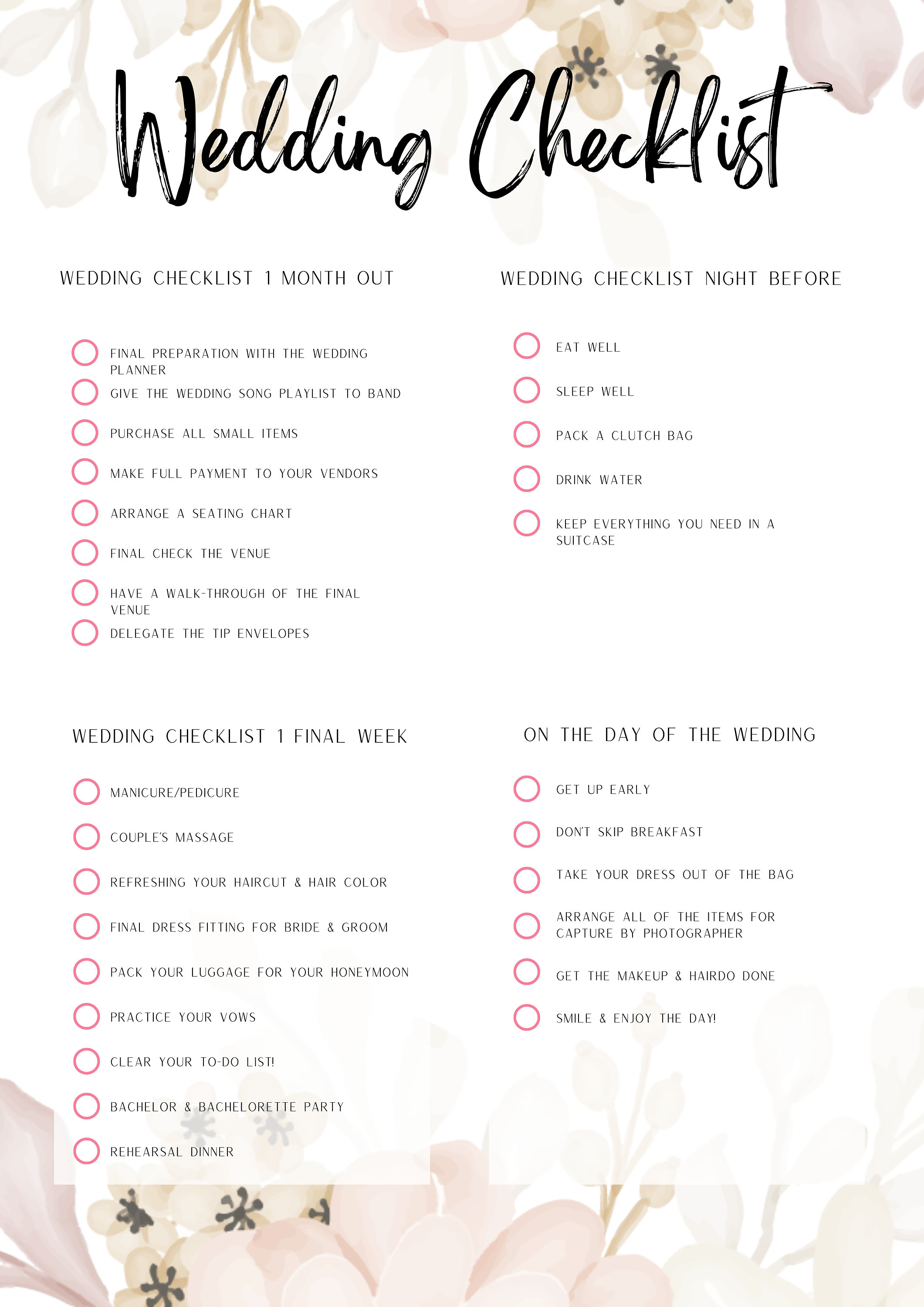 Wedding Planning Checklist Wedding to Do List Pink Wedding Etsy