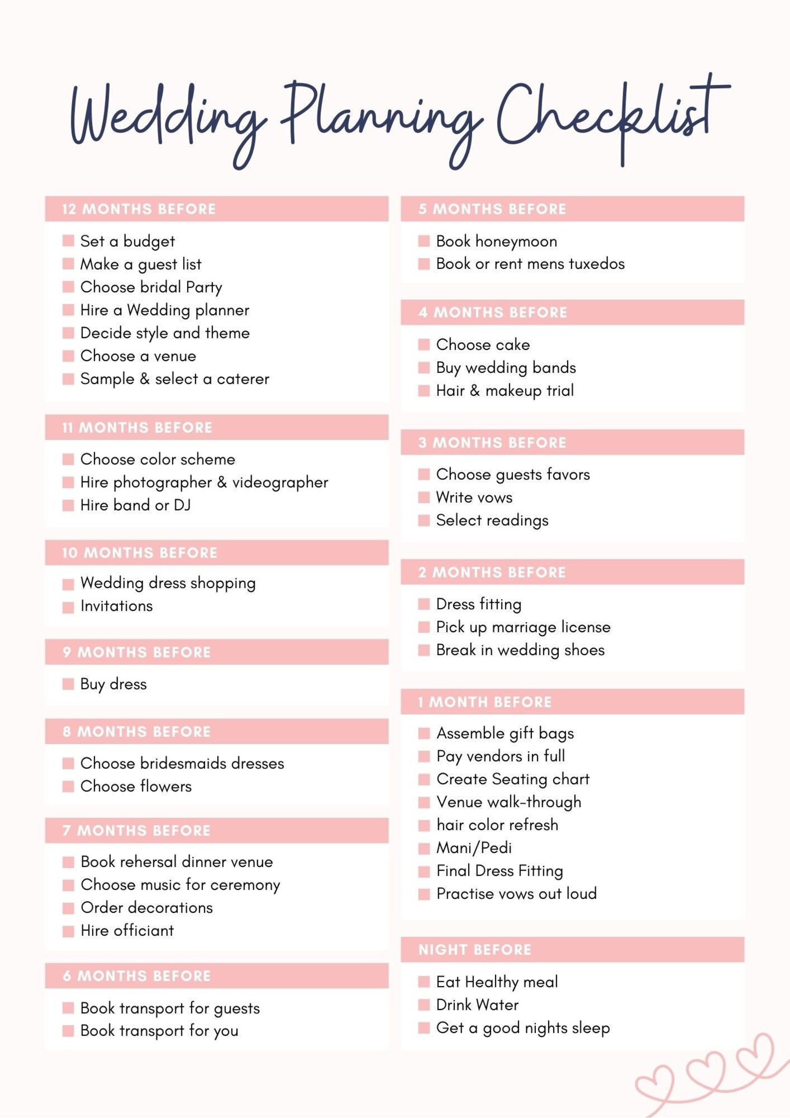 FREE Wedding Checklist 12 Month Checklist The Best Wedding To Do List