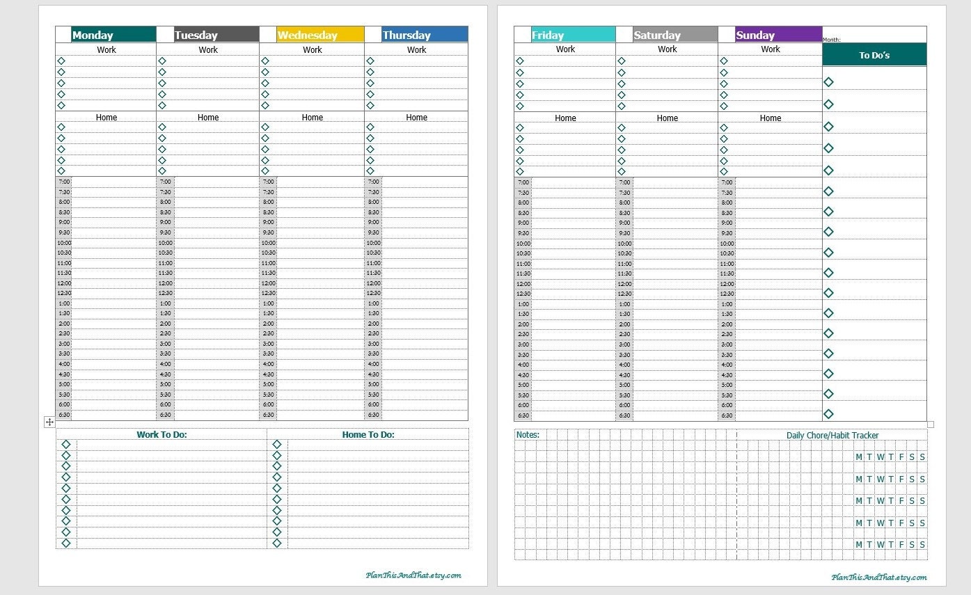 Weekly Planner Printable Weekly Agenda Template Week on Two Pages