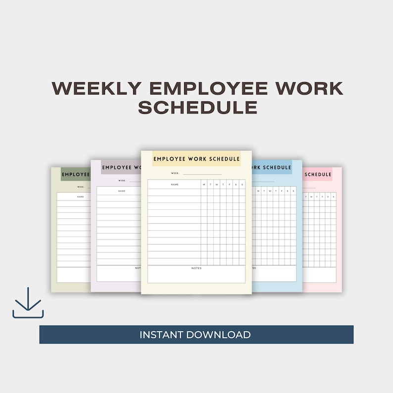 Weekly Employee Work Schedule Printable PDF Instant Etsy