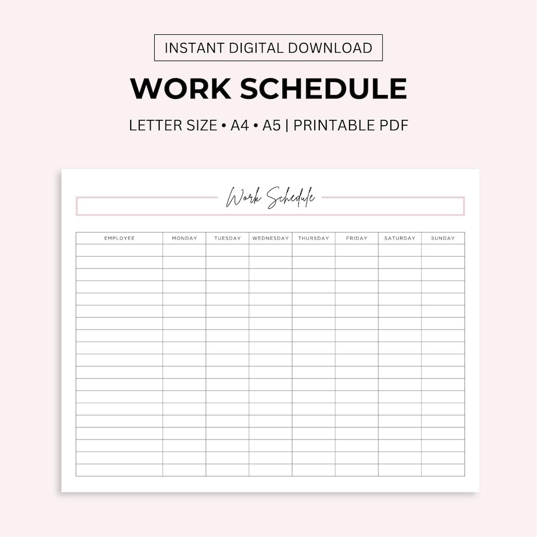 Weekly Employee Work Schedule Printable PDF Instant Digital