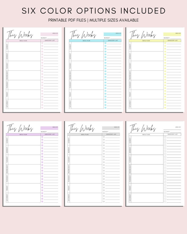 Weekly Meal Planner Grocery List Weekly Menu PDF Digital Download