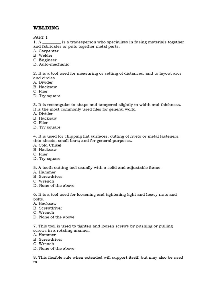 Welding workshop My Worksheet Maker: Create Your Own Worksheets