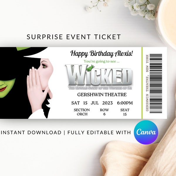 Template WICKED Musical Surprise Ticket to the Theatre Instant