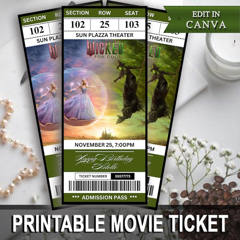 Printable WICKED Broadway Surprise Ticket Editable Musical Ticket