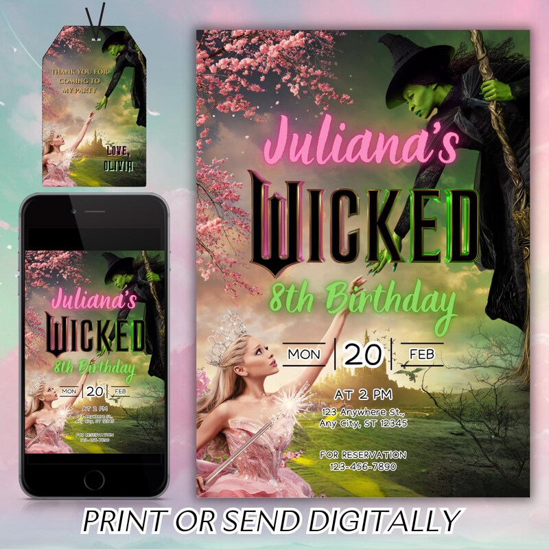 Wicked Birthday Ticket Invitation: Editable Movie Party Template