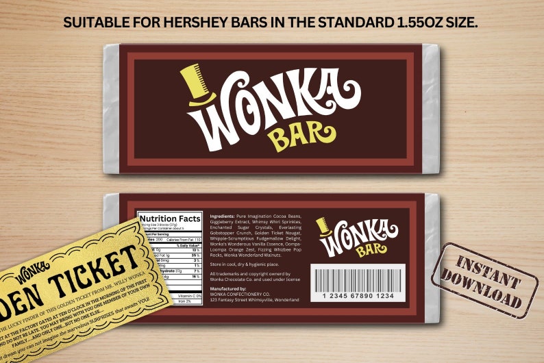 WONKA BAR Hershey size Label Instant Download Printable Etsy
