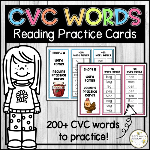 CVC Word Family Lists Reading Fluency Practice Cards CVC Word