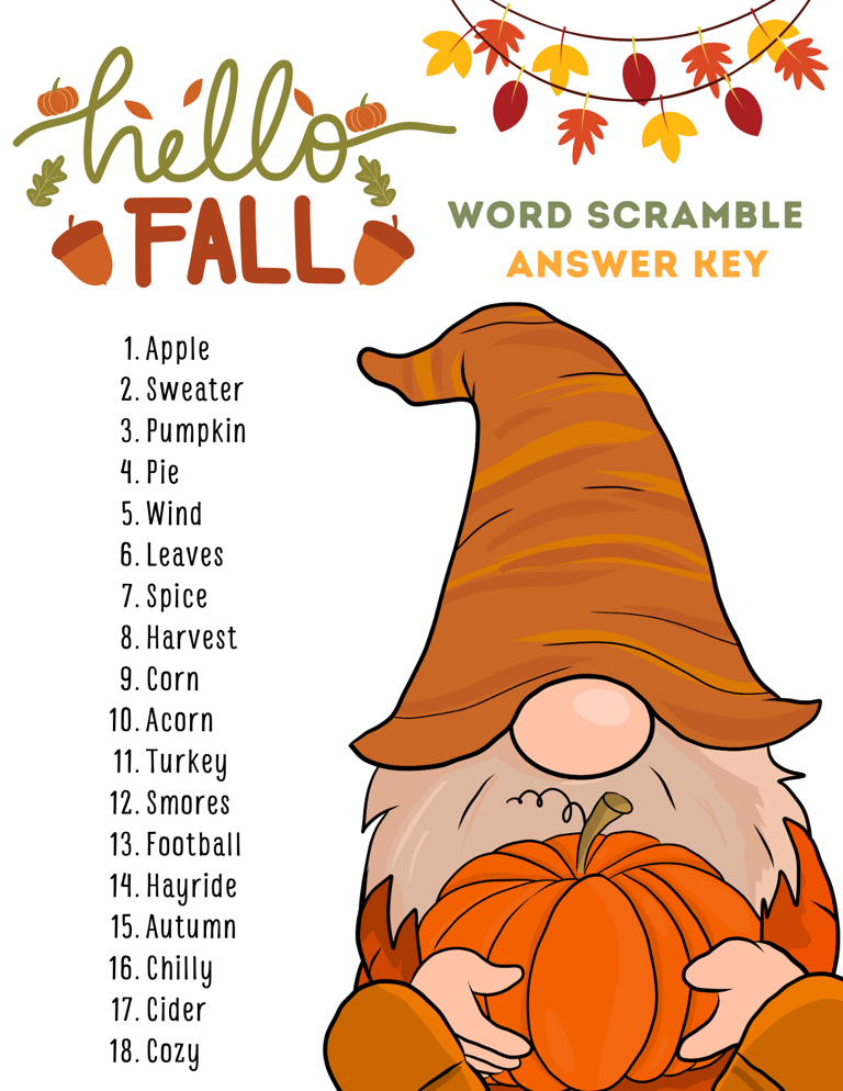 Fall Word Scramble Printable Puzzle