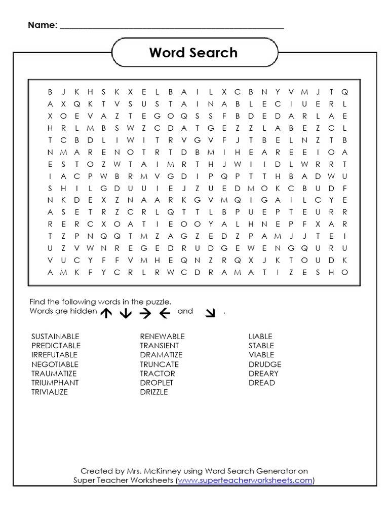 Super Teacher Worksheets Word Search PDF