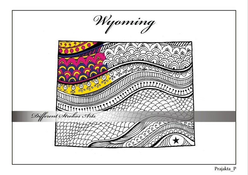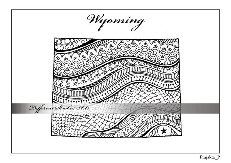 MAPS COLORING PAGE for adults printable Wyoming map to color Etsy