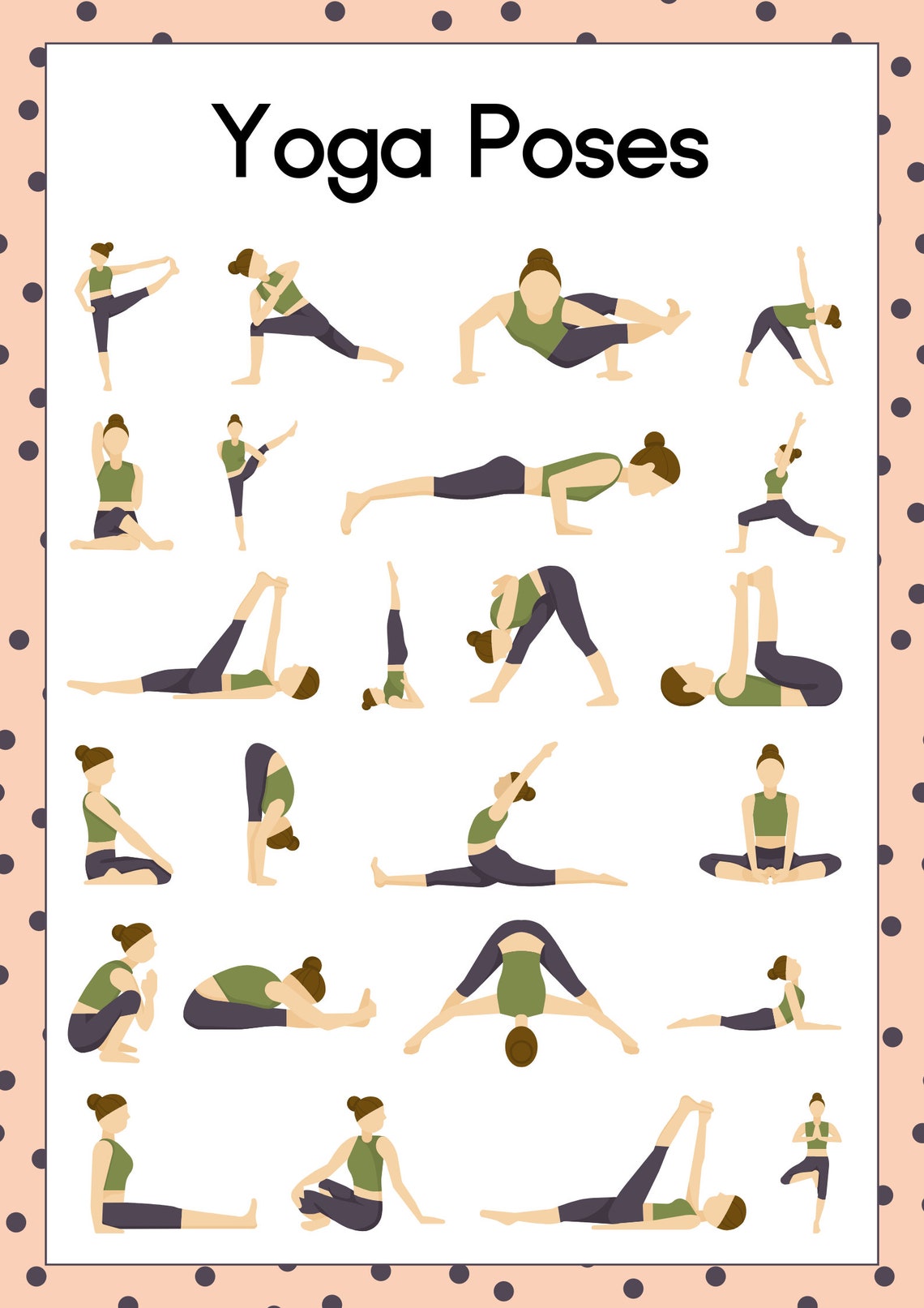 30 Yoga Poses Printable Poster digital Download Yoga Poses Poster yoga