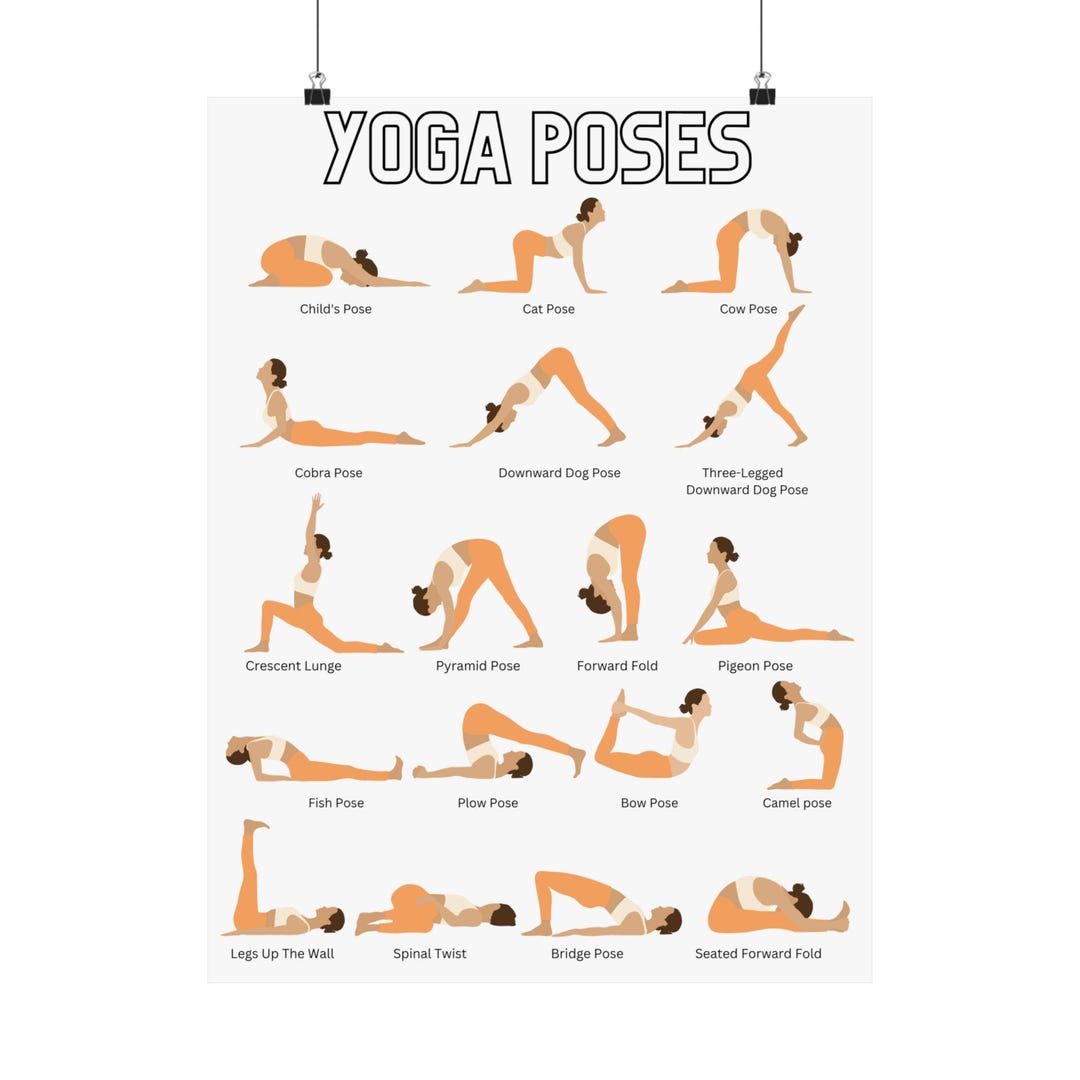 Yoga Poster Yoga Chart Yoga Poses and Their Names Print Wall Art Decor