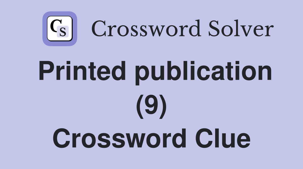 Printed publication (9) Crossword Clue Answers Crossword Solver