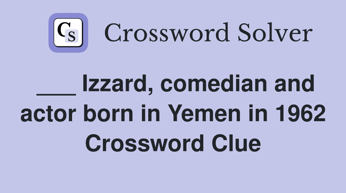 Izzard comedian and actor born in Yemen in 1962 Crossword Clue