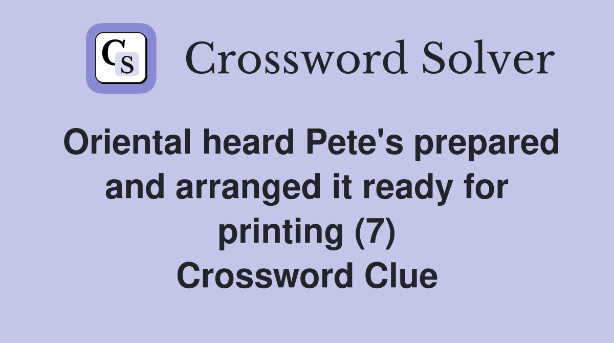 Oriental heard Pete s prepared and arranged it ready for printing (7