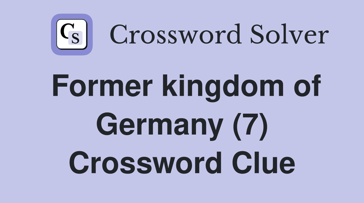 Former kingdom of Germany (7) Crossword Clue Answers Crossword Solver