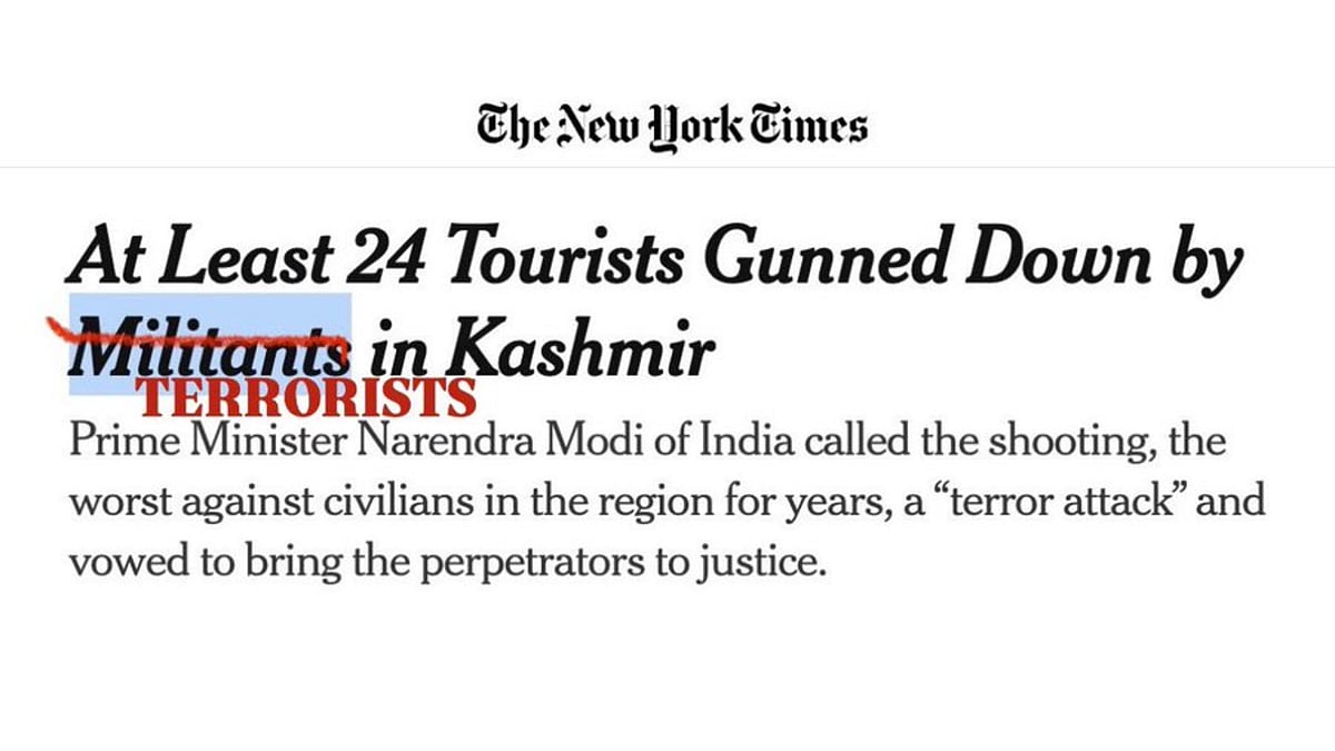 US #39 Fixes #39 NYT Headline On Pahalgam Terror Attack Saying #39 Militants