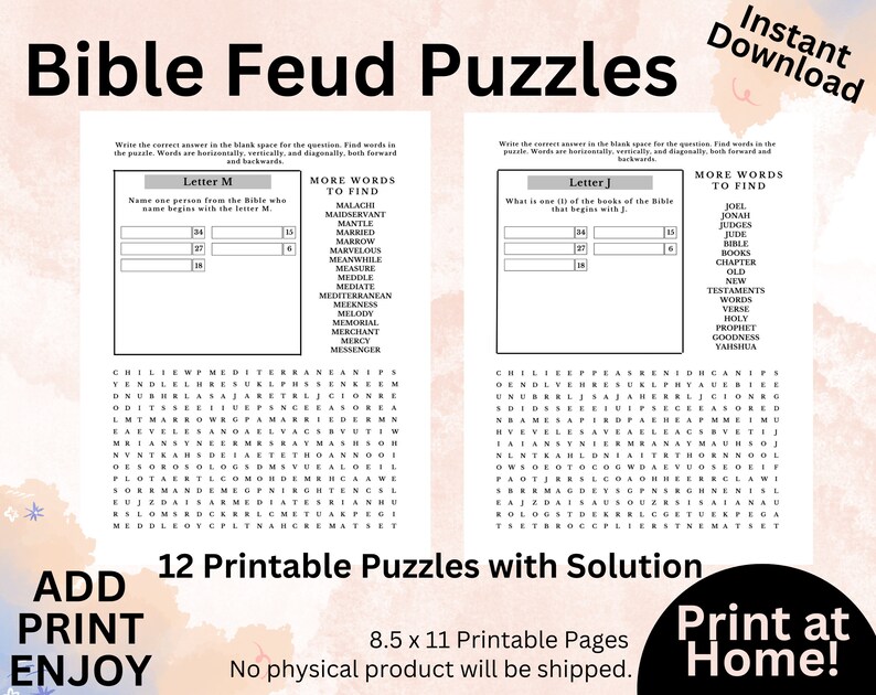 Bible Feud Word Hunt Printable Bible Study Game Bible Word Search