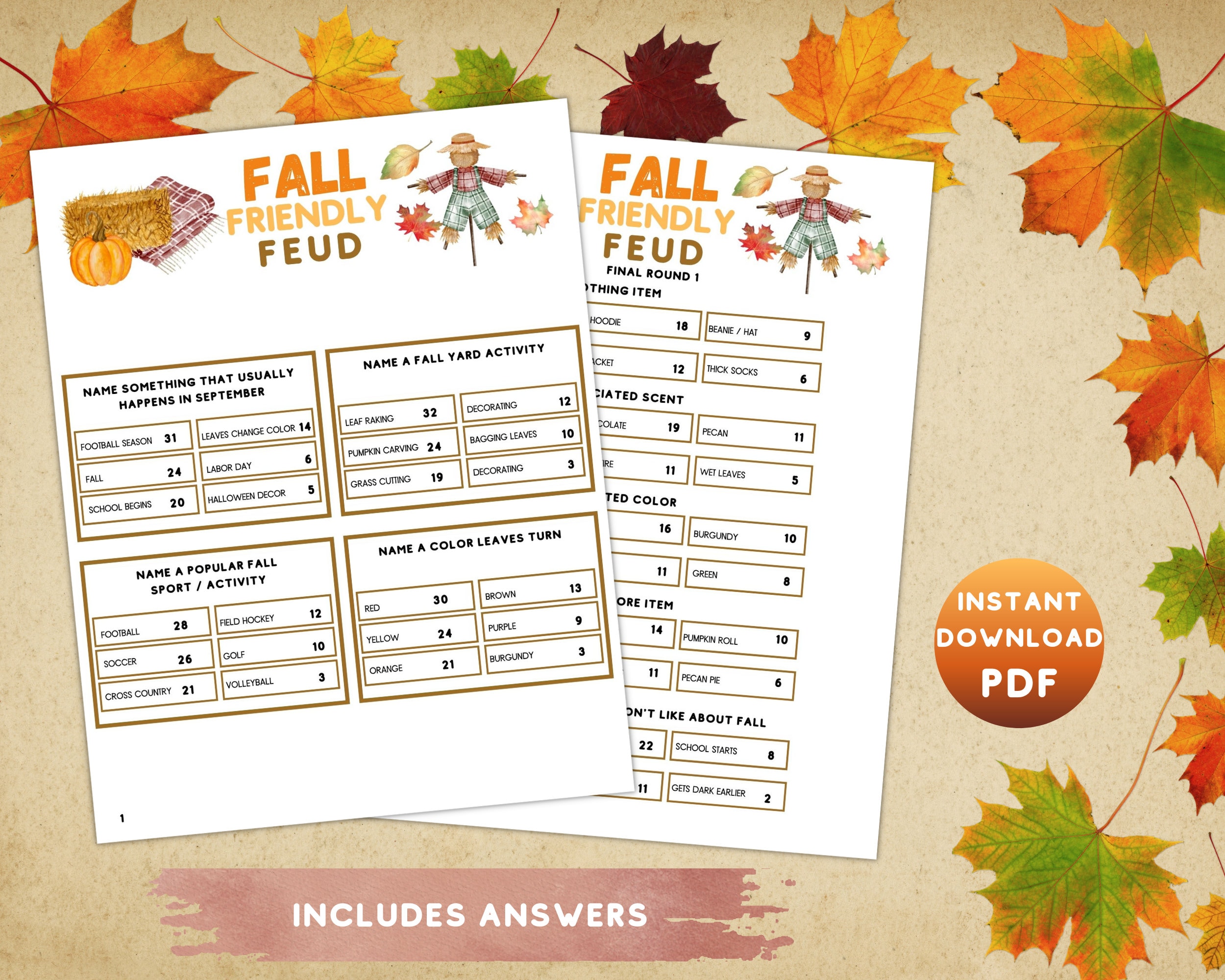 Autumn Fall Family Feud Trivia Printable Game adults Kids Fun Etsy UK