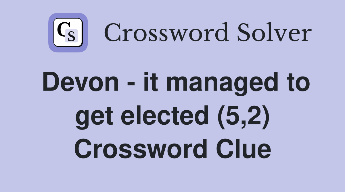 Devon it managed to get elected (5 2) Crossword Clue Answers