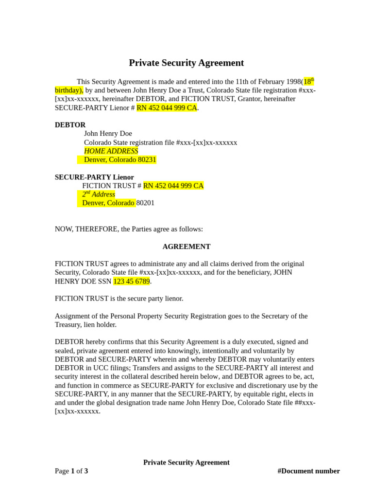 Private Security Agreement Scrub PDF Lien Security Interest