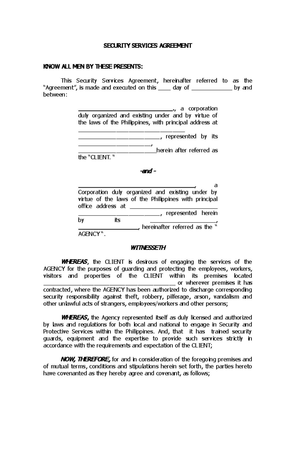 Security Agreement Template SECURITY SERVICES AGREEMENT KNOW ALL MEN