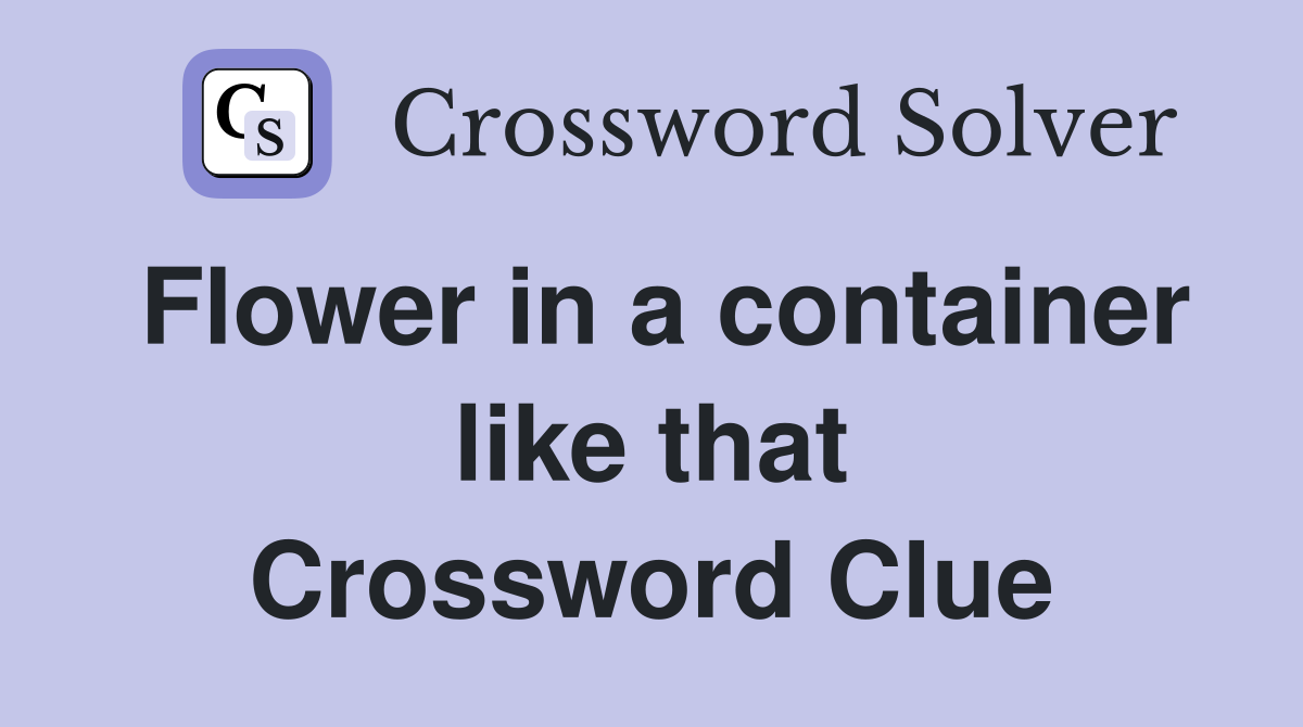 Flower in a container like that Crossword Clue Answers Crossword Solver