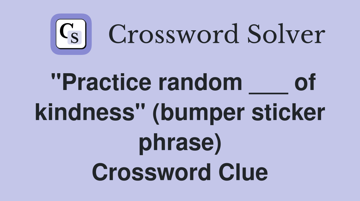quot Practice random of kindness quot (bumper sticker phrase) Crossword