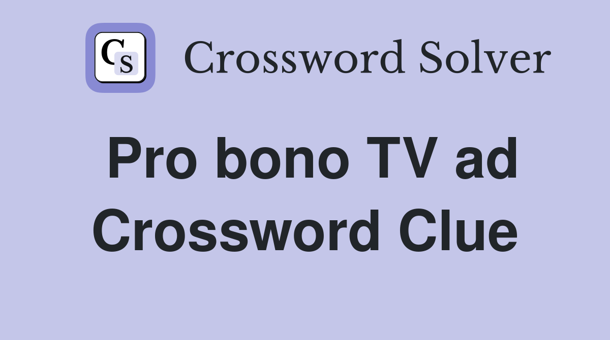 Pro bono TV ad Crossword Clue Answers Crossword Solver