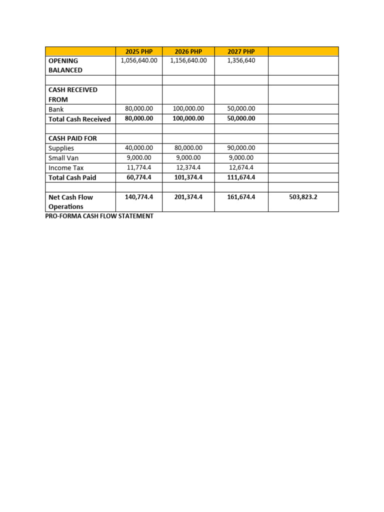 Pro Forma Cash Flow Statement PDF