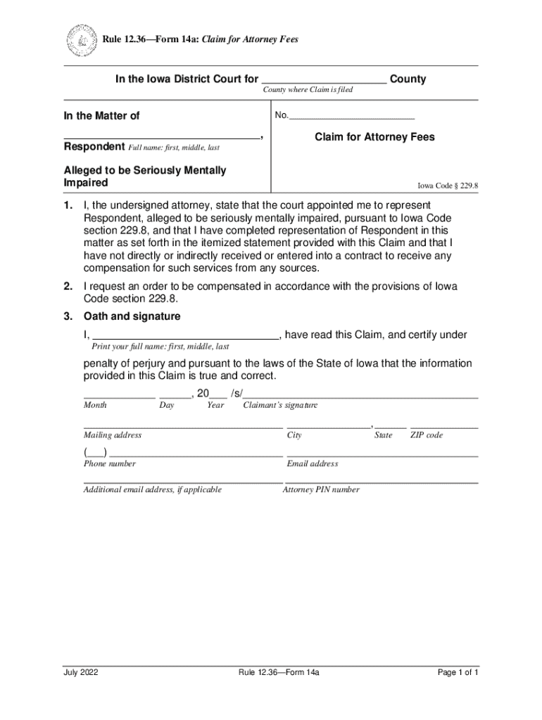 Fillable Online Claim for Attorney Fees Rule 12 36Form 14a Fax Email