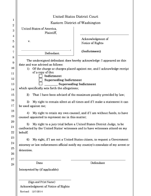 Fillable Online Acknowledge Notice of Rights Indictment Eastern