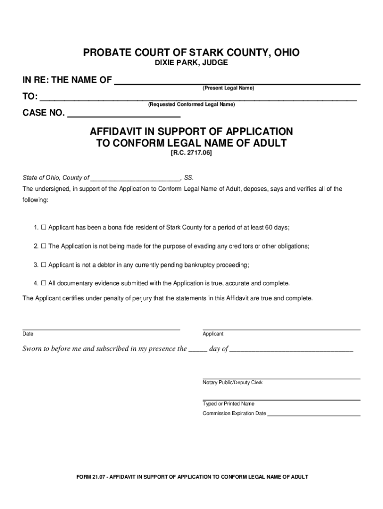 Fillable Online PROBATE COURT OF STARK COUNTY OHIO DIXIE PARK JUDGE