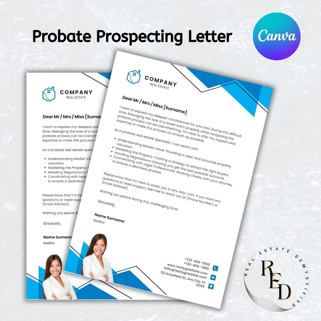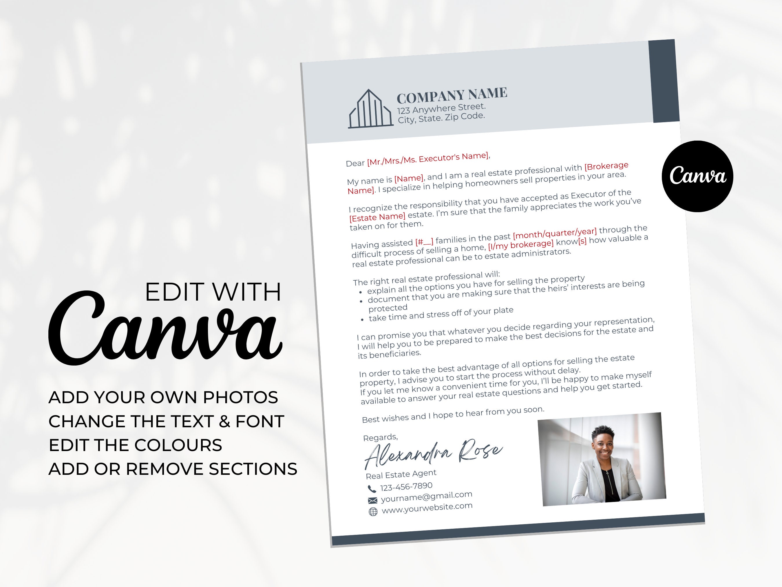 Real Estate Probate Letter Template Canva Editable Realtor Marketing