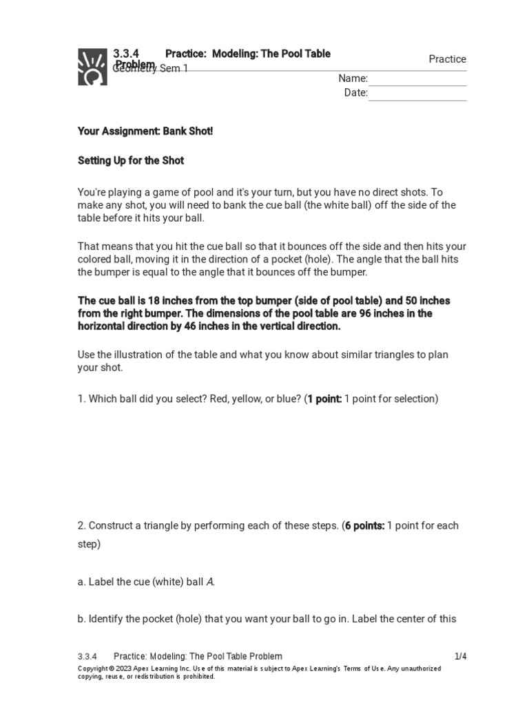 3 3 4 Practice Modeling The Pool Table Problem (Practice) PDF