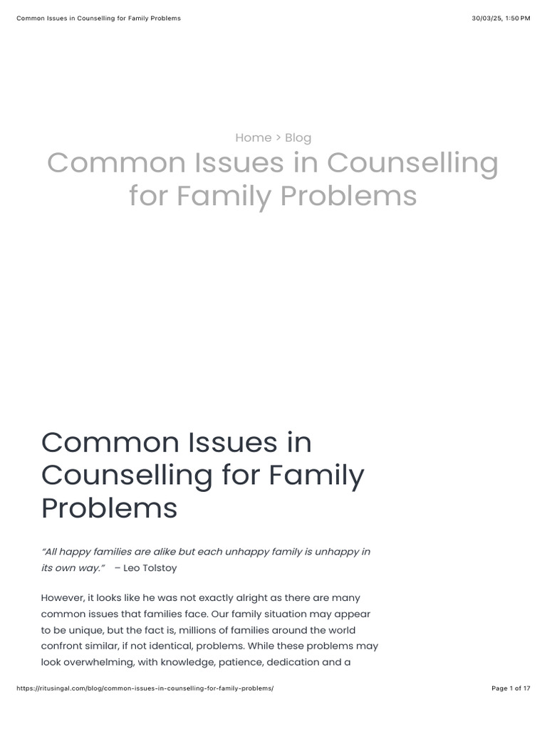 Common Issues in Counselling For Family Problems PDF Anxiety
