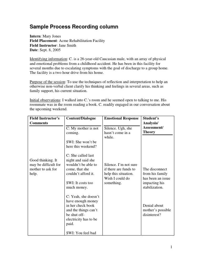 Process Recording Template Social Work