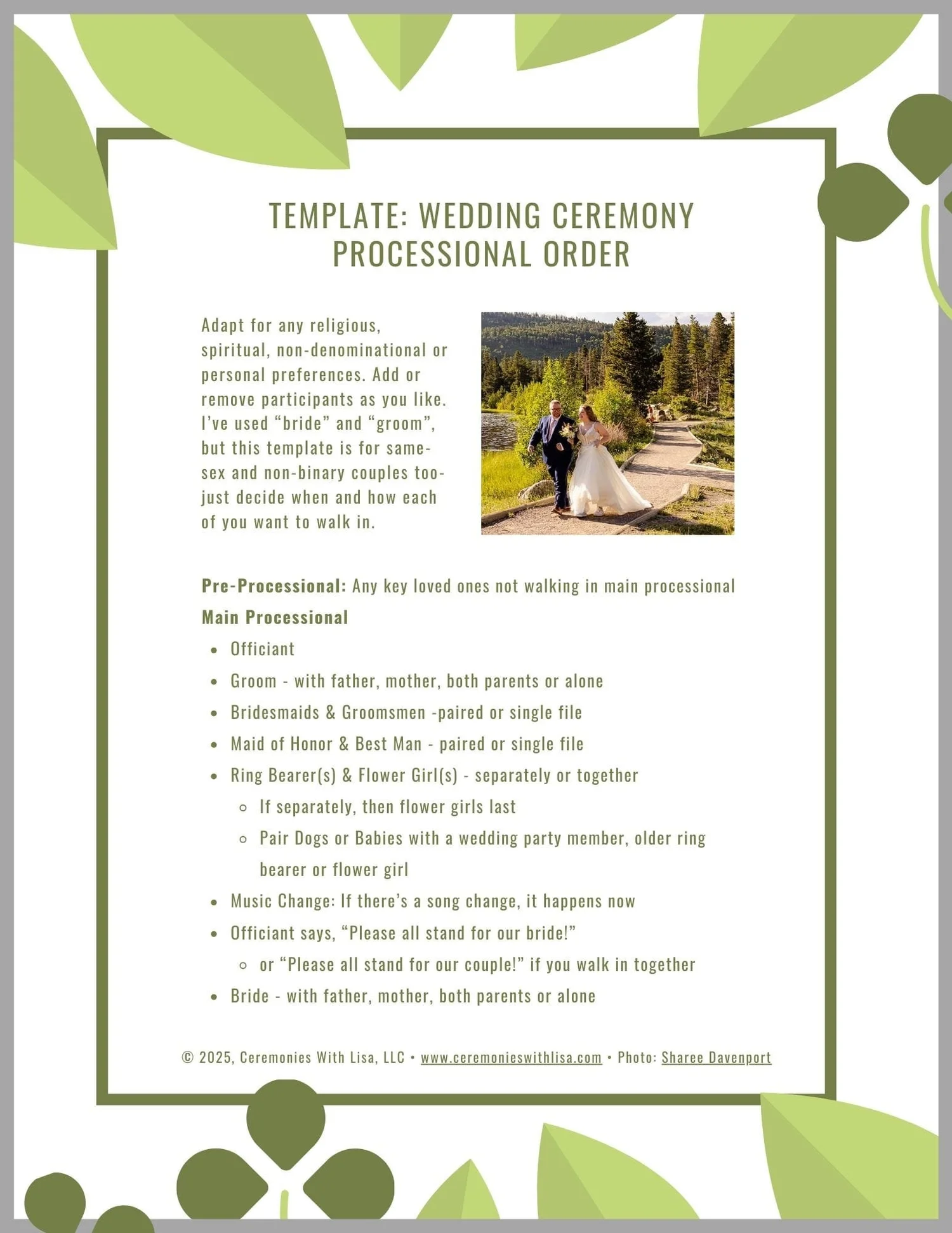 Wedding Ceremony Processional Template and Ceremony Lineup (printable