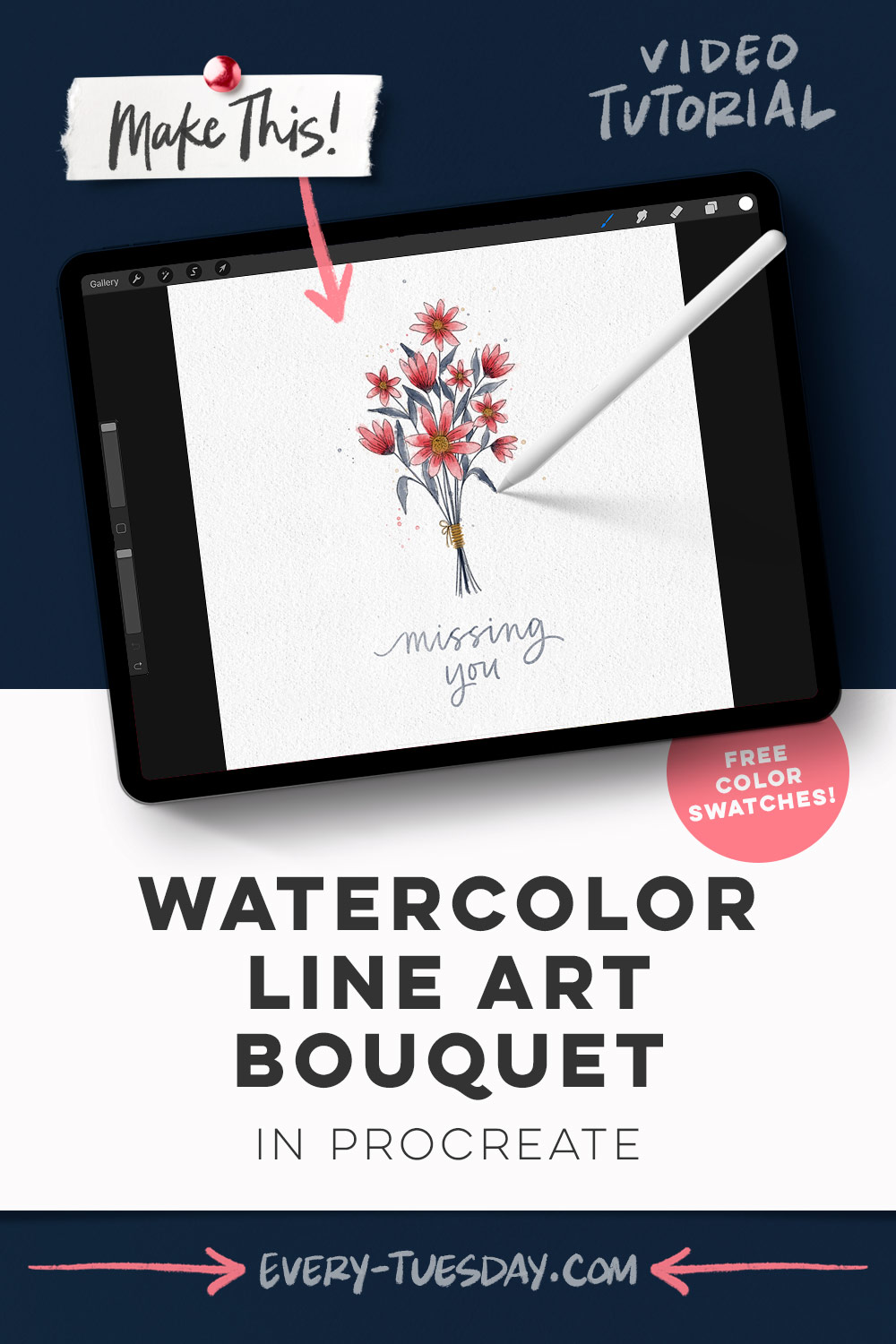 Watercolor Line Art Bouquet in Procreate Every Tuesday Blog Every