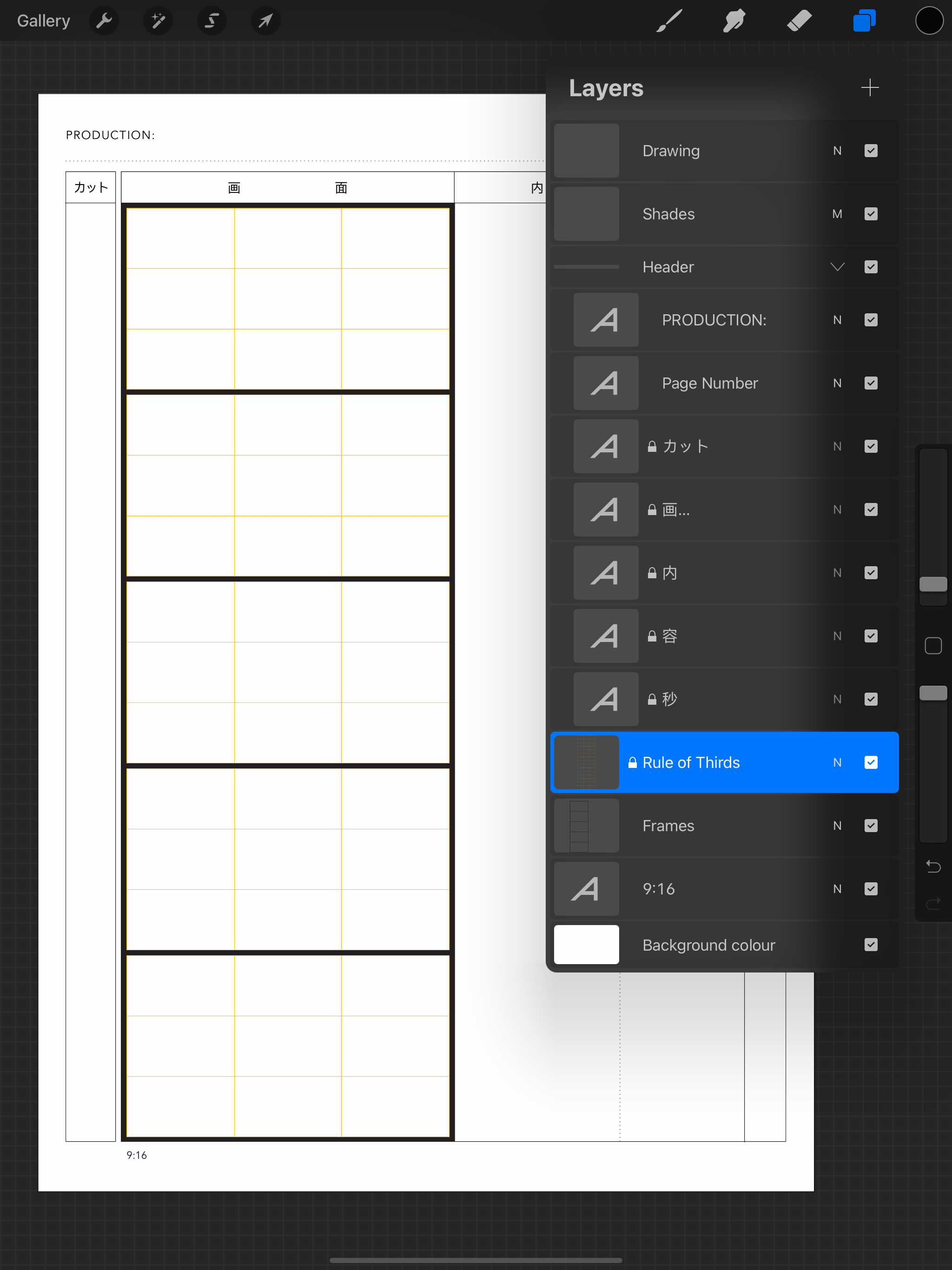 Free Procreate Japanese Anime Storyboard Template for 16:9 aspect ratio