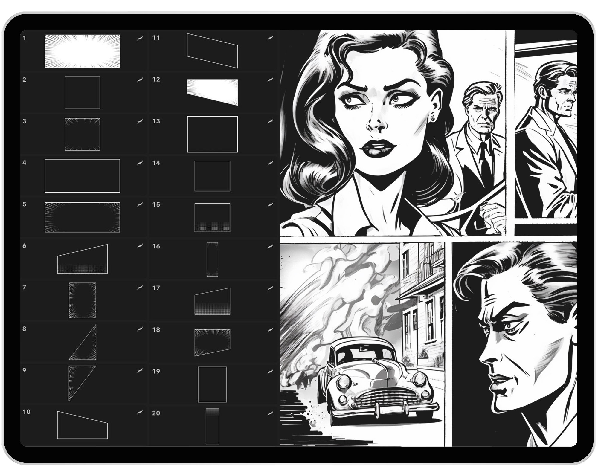 133 Procreate Manga Storyboard Templates and Halftone Brushes