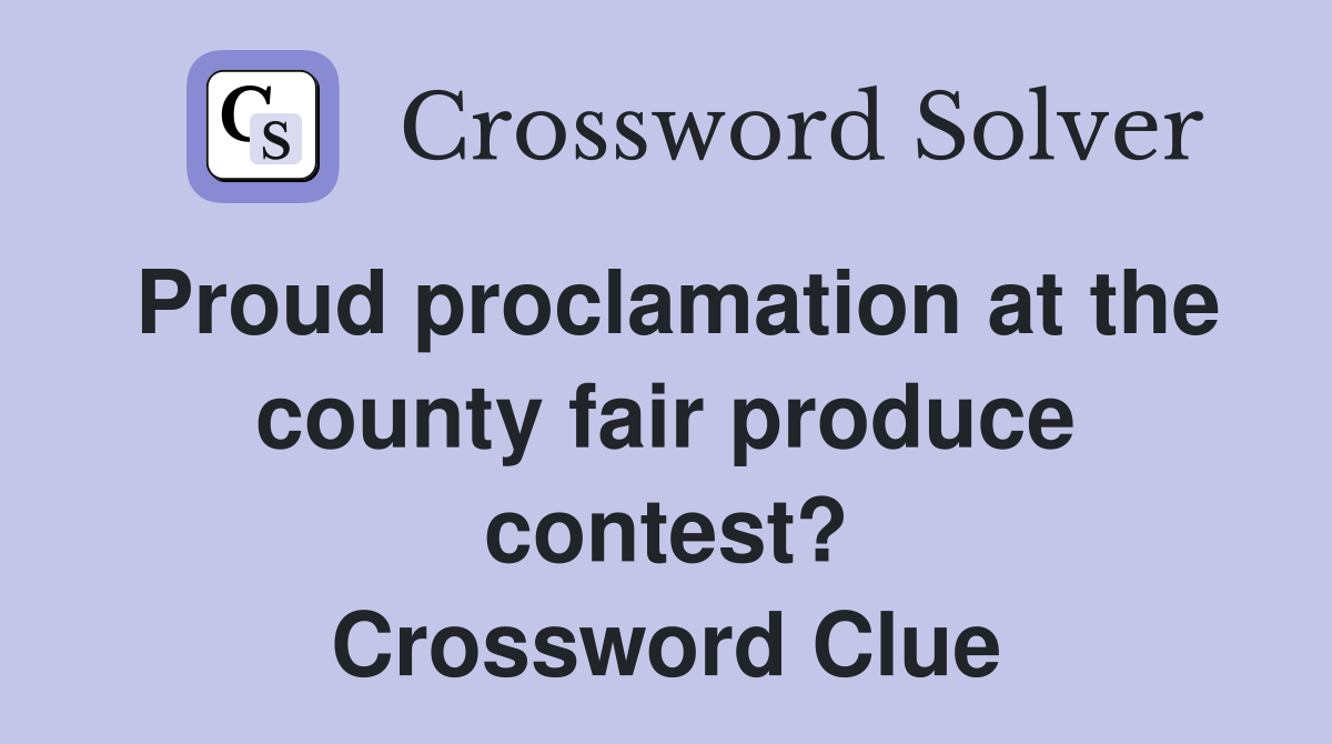Proud proclamation at the county fair produce contest? Crossword Clue