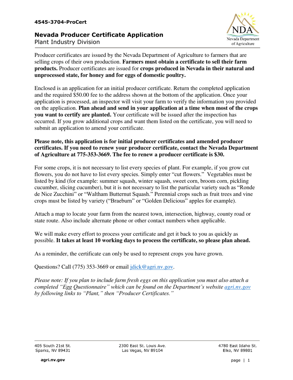Nevada Nevada Producer Certificate Application Fill Out Sign Online