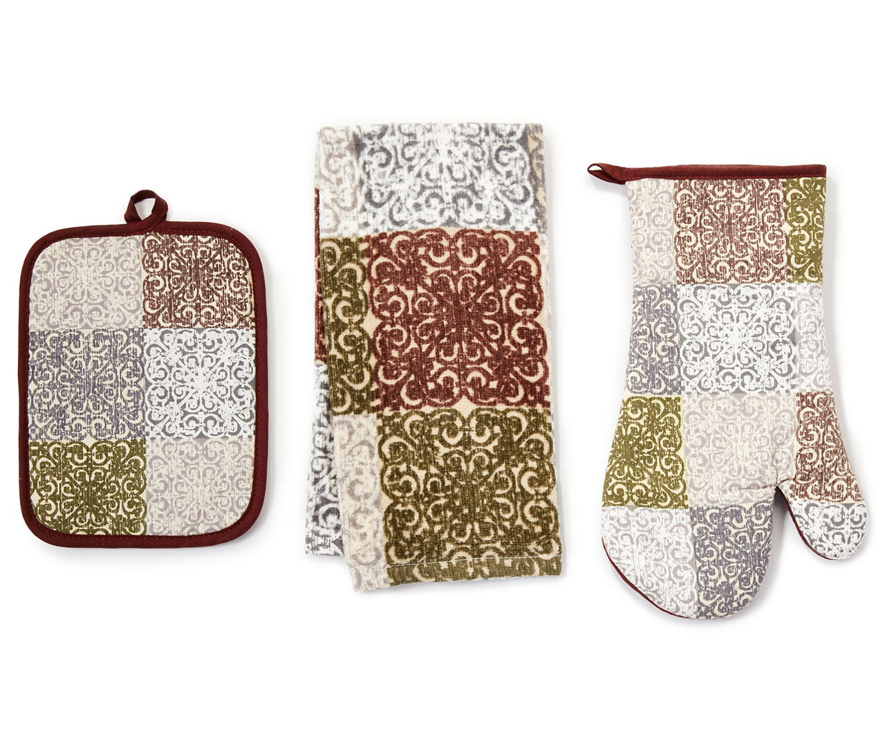 quot Mainstays Ogee Tile Kitchen Towel Pot Holder Oven Mitt Set Multicolor